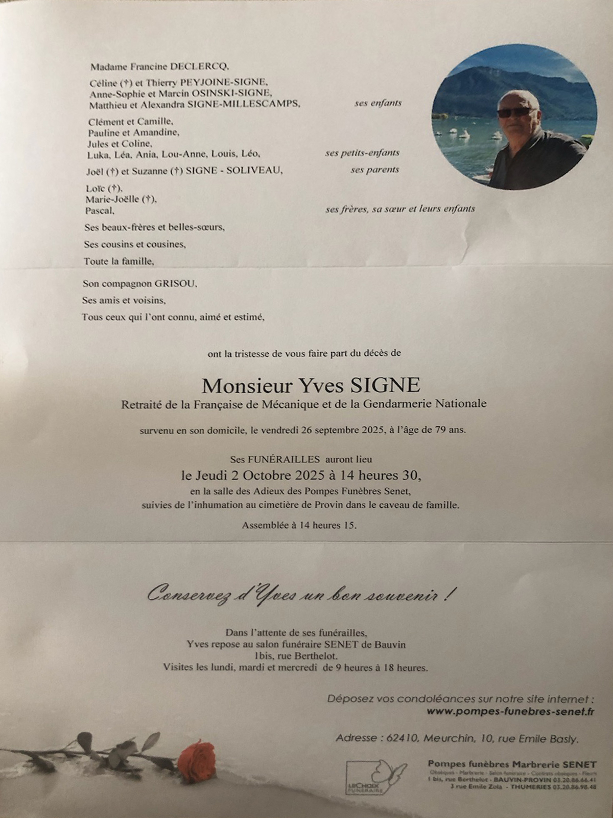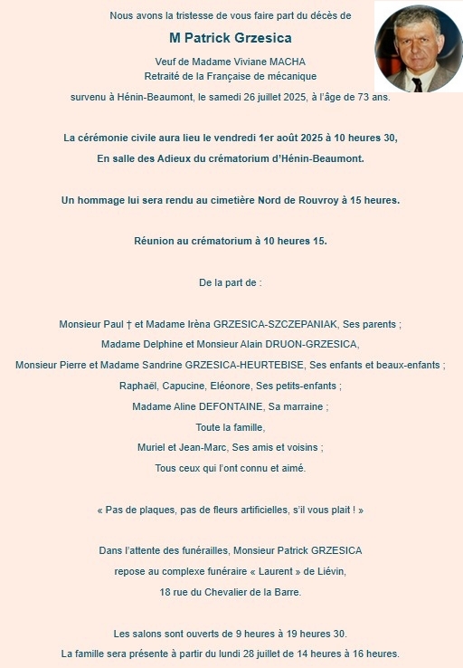 Pour voir son faire part de décès, Cliquez ici