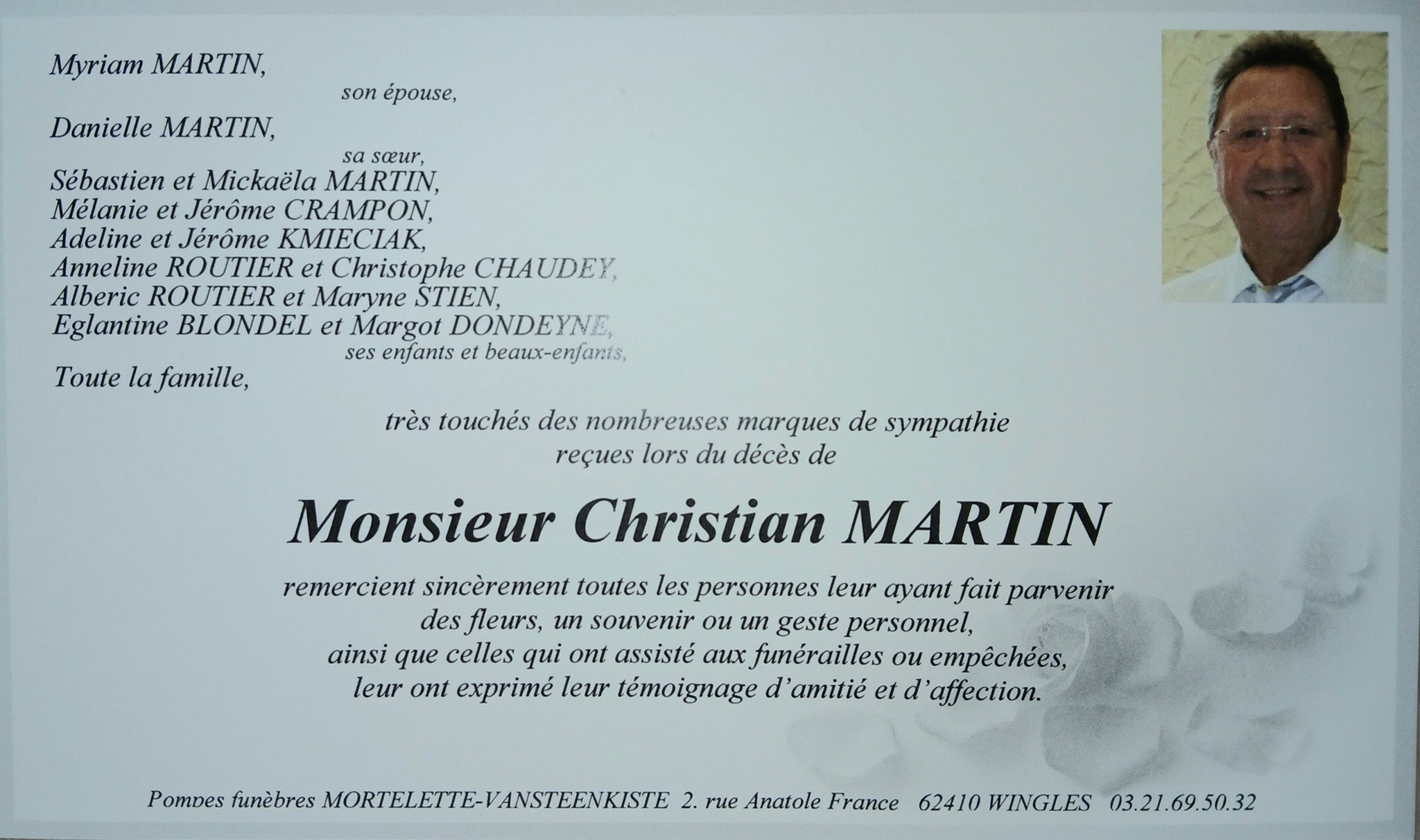 pour voir la carte de remerciements de sa famille, Cliquez ici